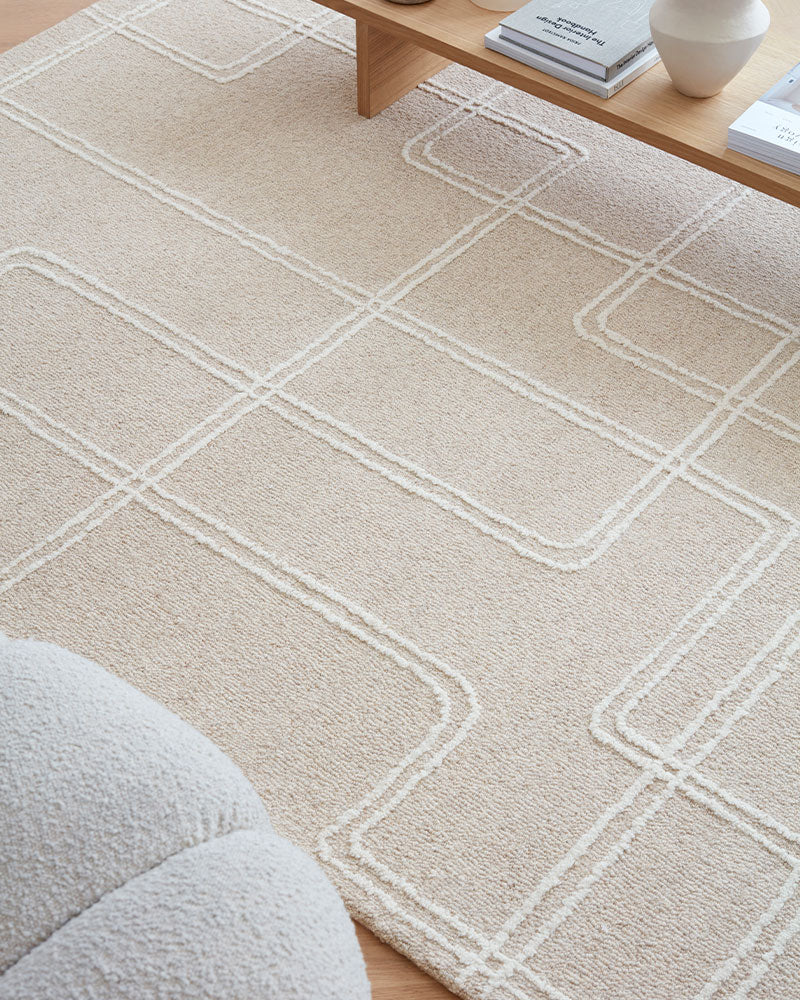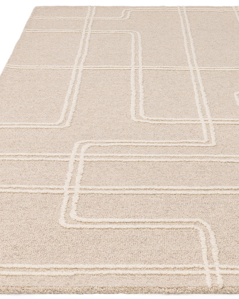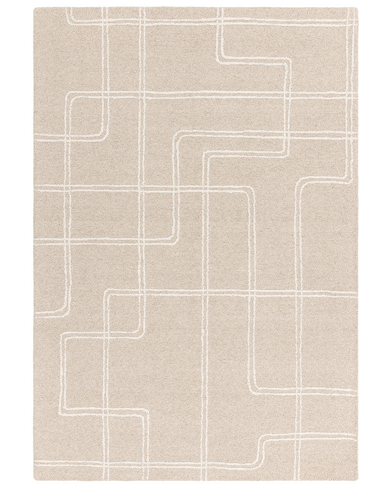 ADA SAND BEIGE TEXTURED GEOMETRIC WOOL LOOP RUG