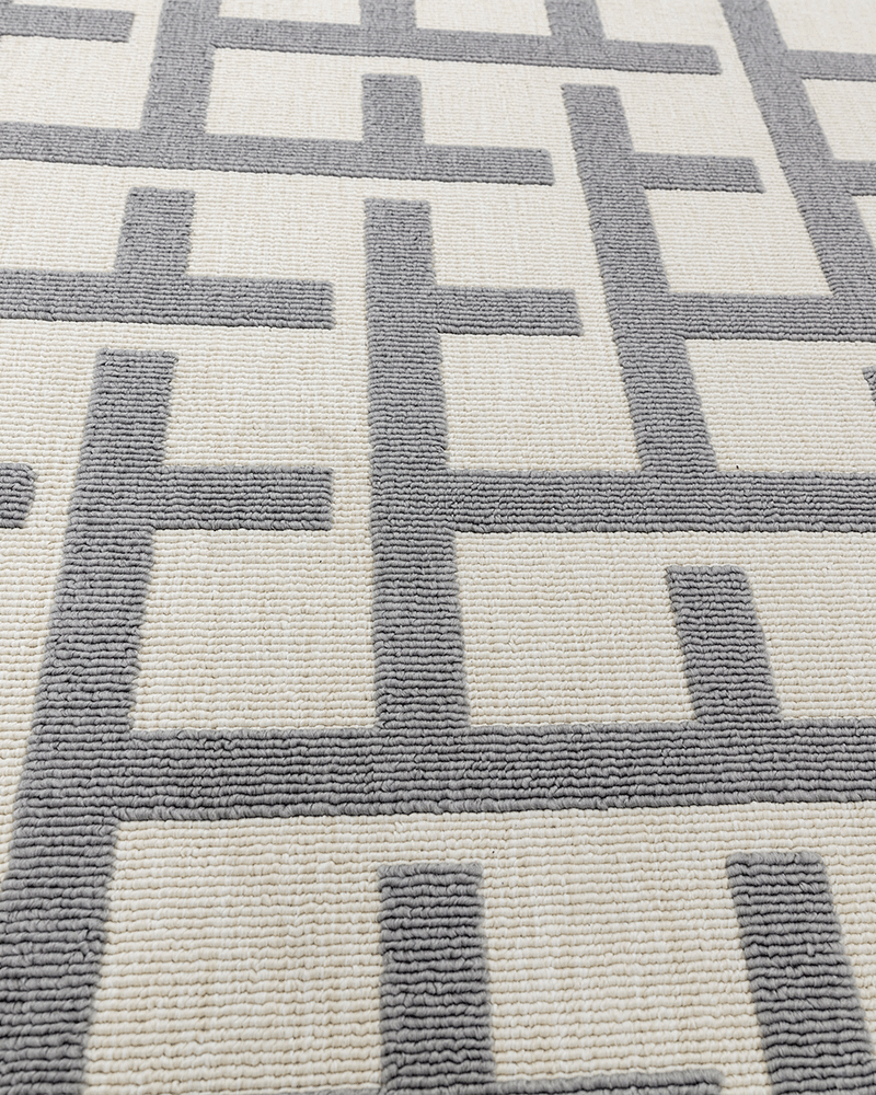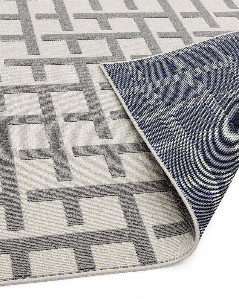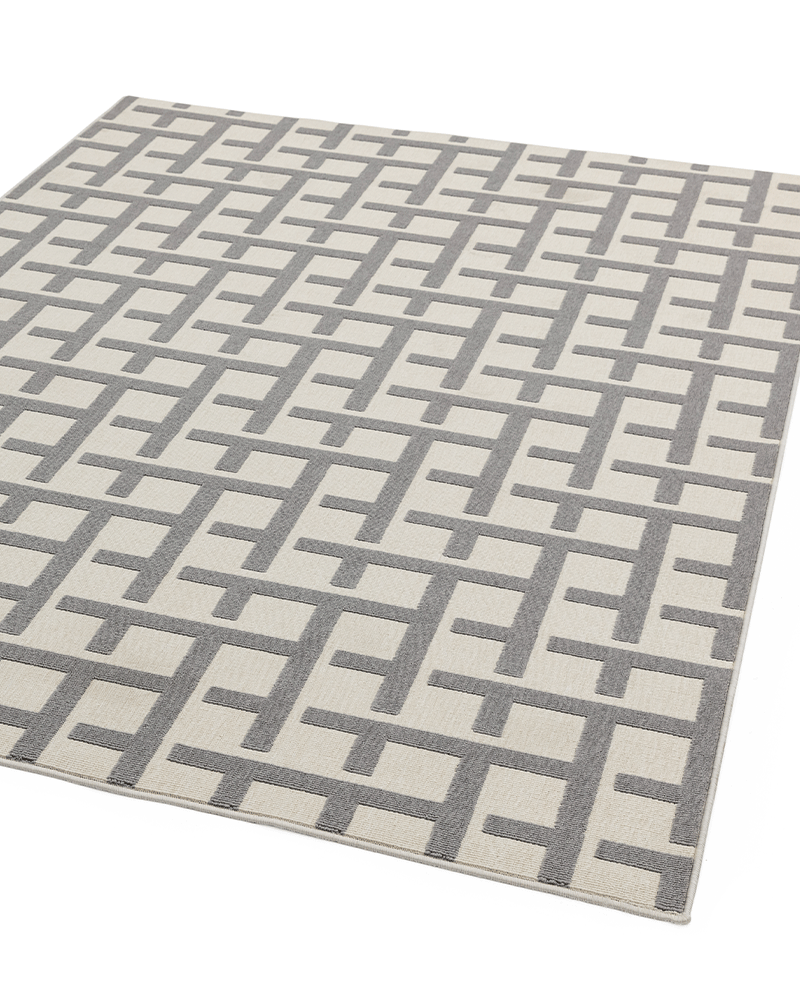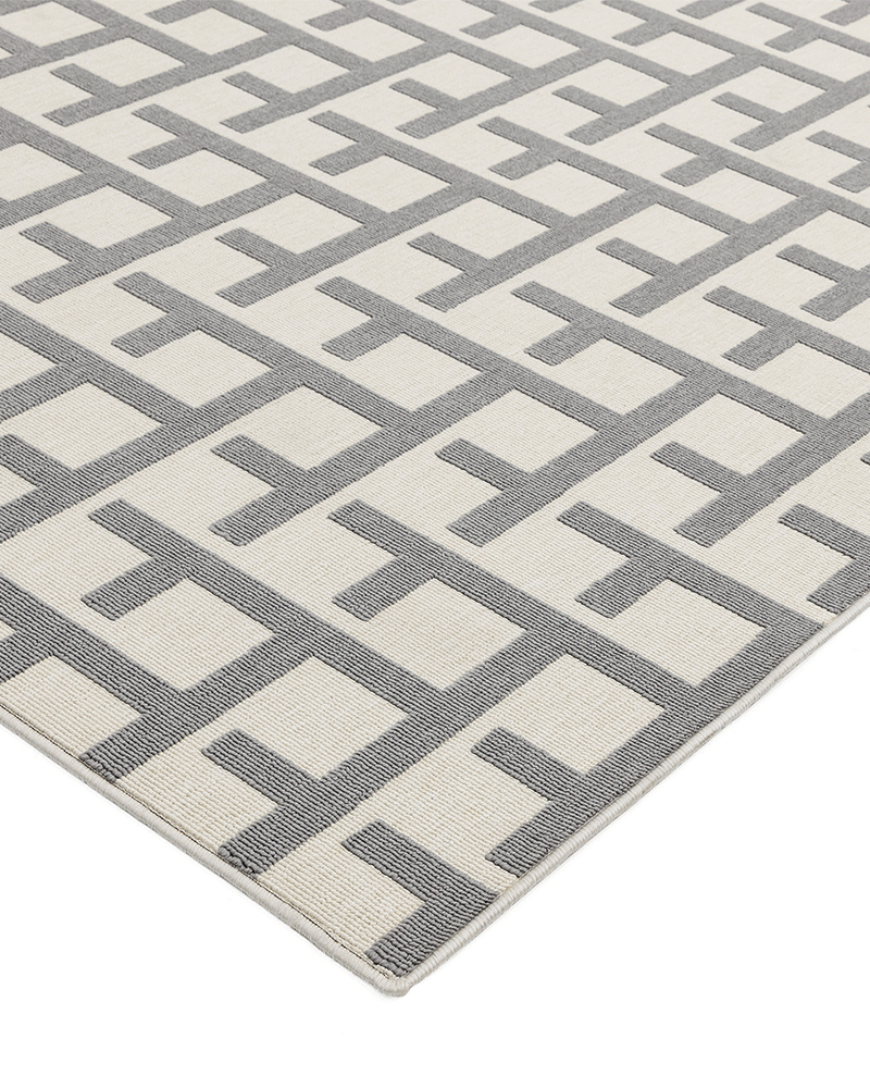 Clean, sharp, geometric designs in sophisticated shades, the contemporary Antibes collection is woven to withstand high traffic areas both indoor and outdoors, blending style and functionality perfectly. Silky soft high and low loop piles create a subtle 3D effect.