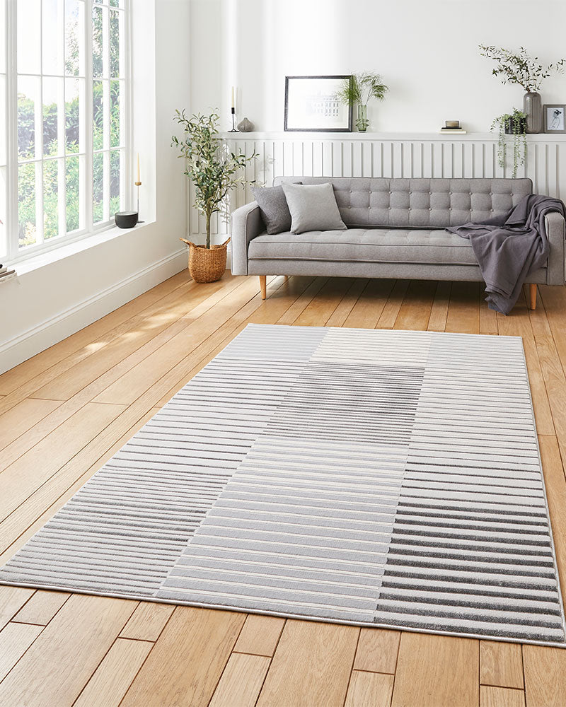 APOLLO 2681 GREY IVORY METALLIC STRIPE RUG