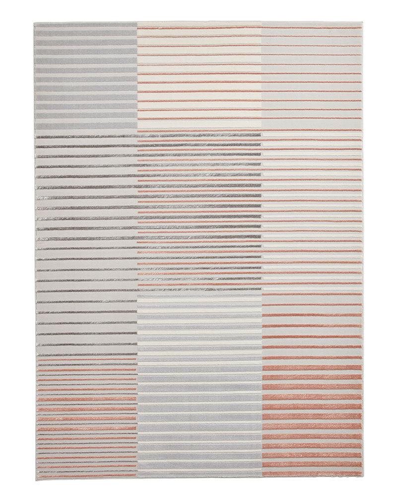 APOLLO 2681 GREY ROSE PINK METALLIC STRIPE RUG