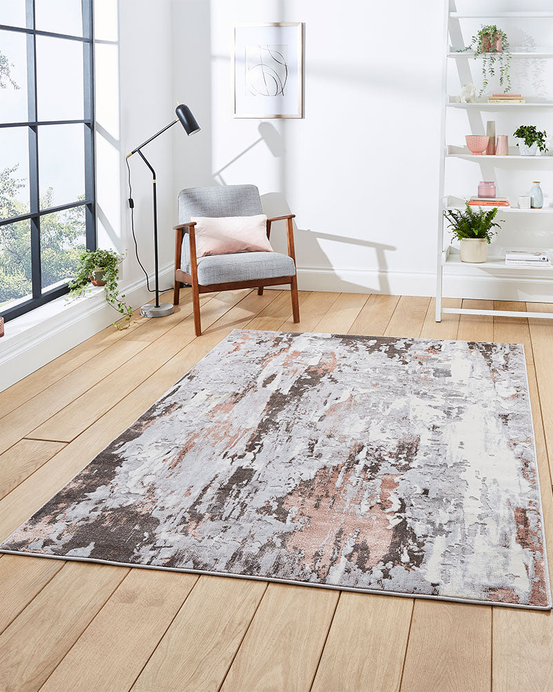 APOLLO GR580 GREY ROSE PINK METALLIC ABSTRACT RUG