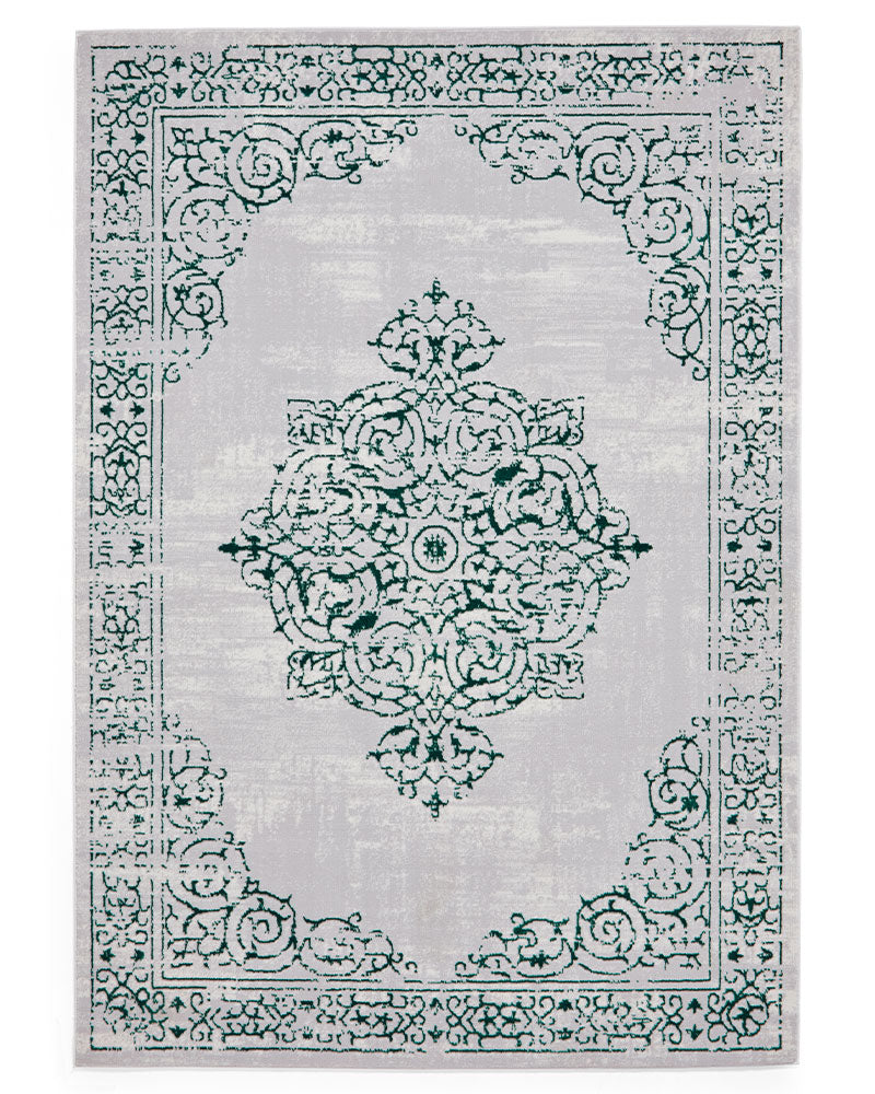 ARTEMIS B9076A GREEN SILVER METALLIC VINTAGE STYLE RUG