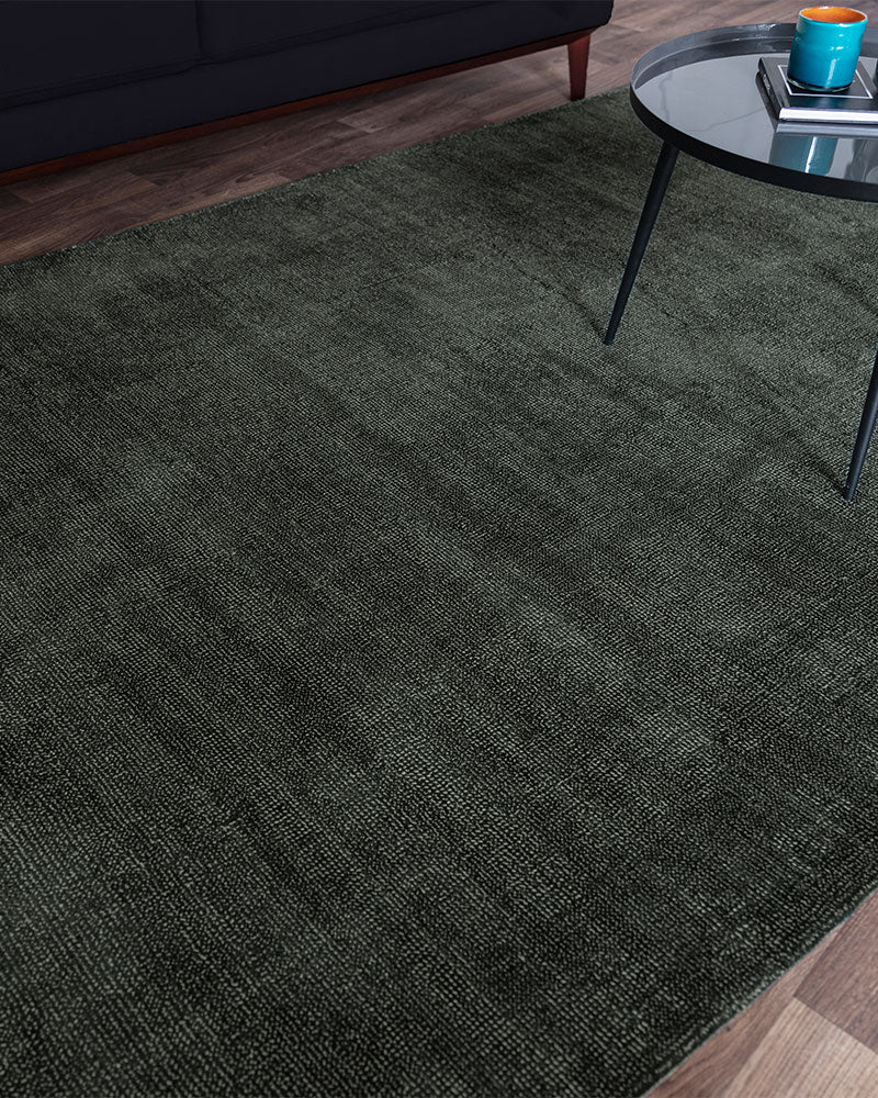 ASTON PLAIN VISCOSE GREEN DISTRESSED EFFECT SHIMMER RUG