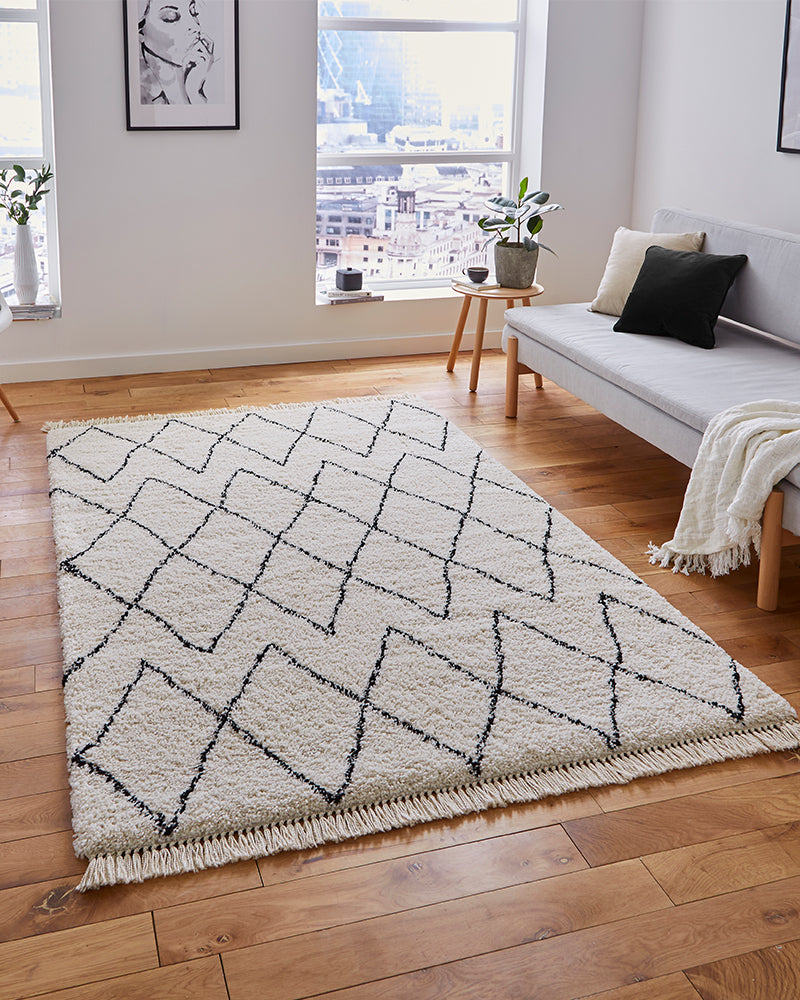 The Boho range is crafted with precision, through machine weaving, it boasts a high-density pile that offers durability without compromising on the plush, soft texture. Inspired by the Moroccan Beni Ourain designs, this rug adds a touch of Bohemian style.