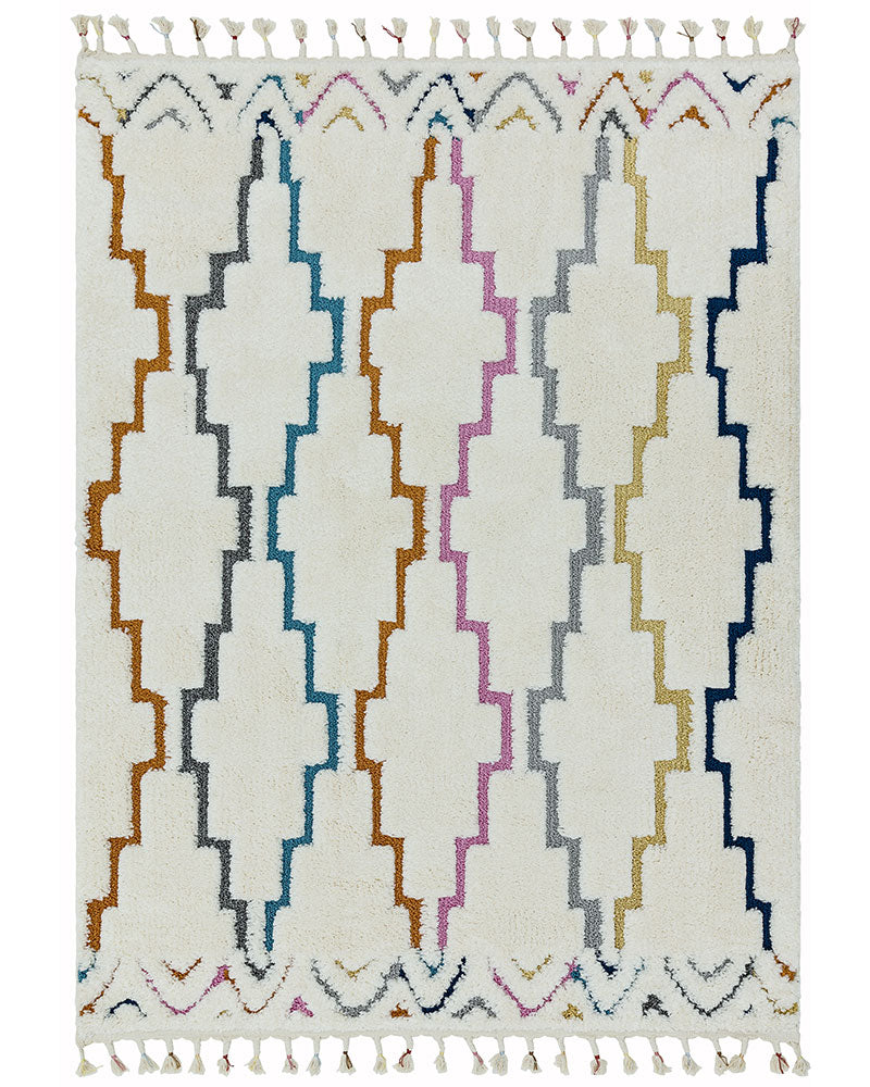 The Moroccan inspired Ariana collection creates a boho vibe with its shaggy textures and Scandi design. Using a cut and loop method, the Ariana boasts a luxuriously soft deep woven pile and a high-low textured finish. Available in a choice of multicoloured and tonal modern Moroccan inspired designs, each piece is finished with a tassel fringe.