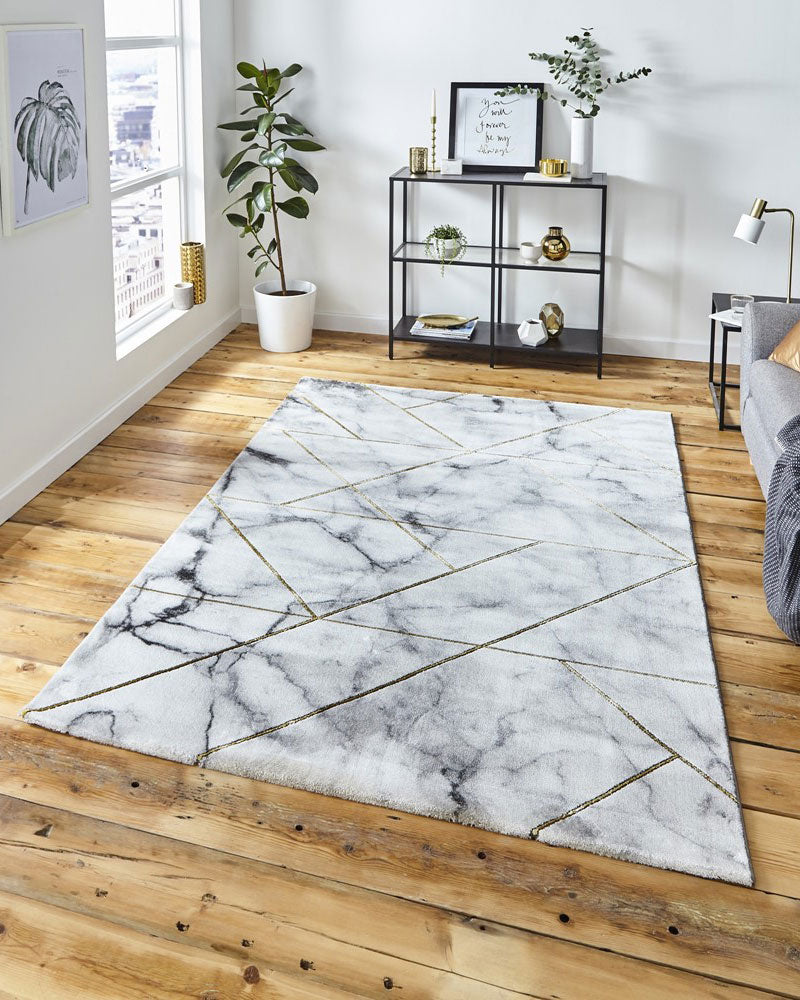 CRAFT 23299 IVORY GOLD MARBLE GEOMETRIC RUG