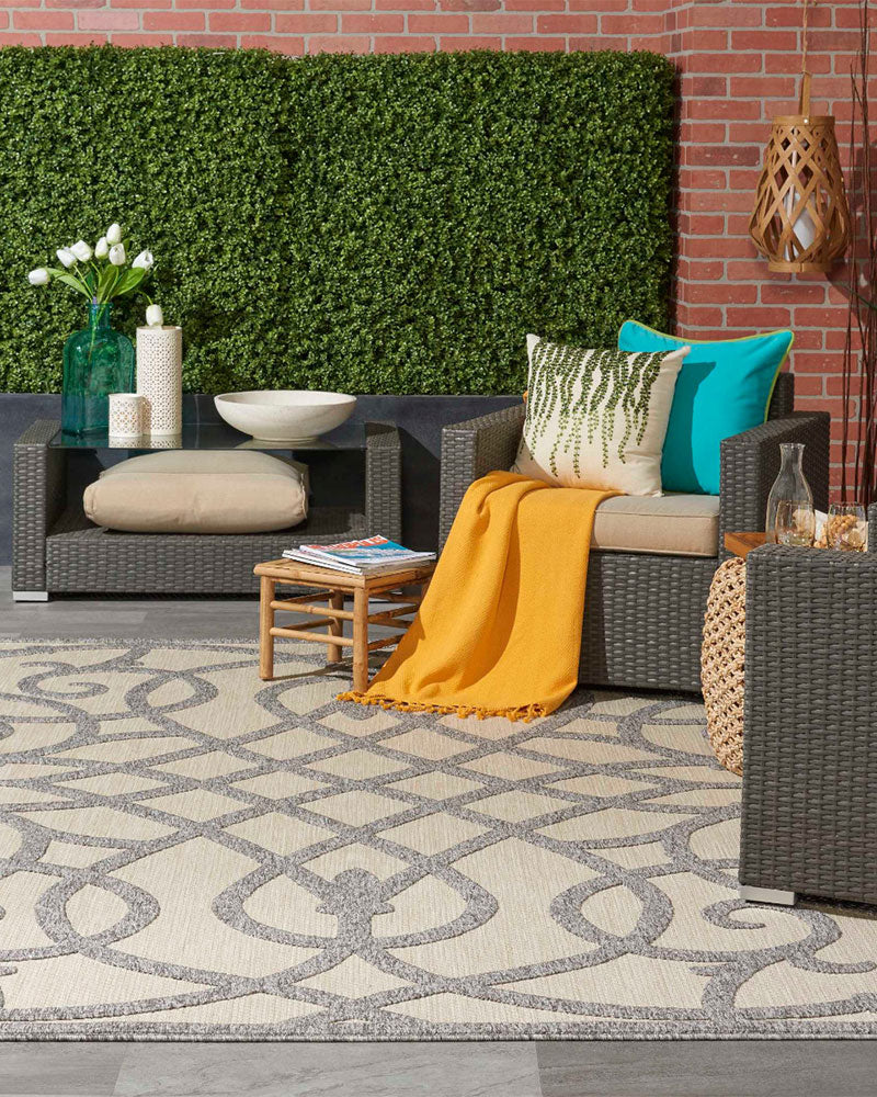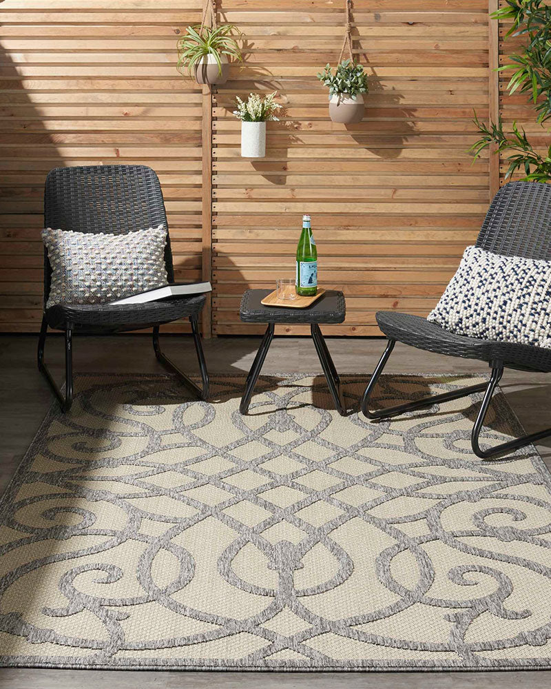 COZUMEL CZM04 SCROLL INDOOR OUTDOOR CREAM GREY RUG