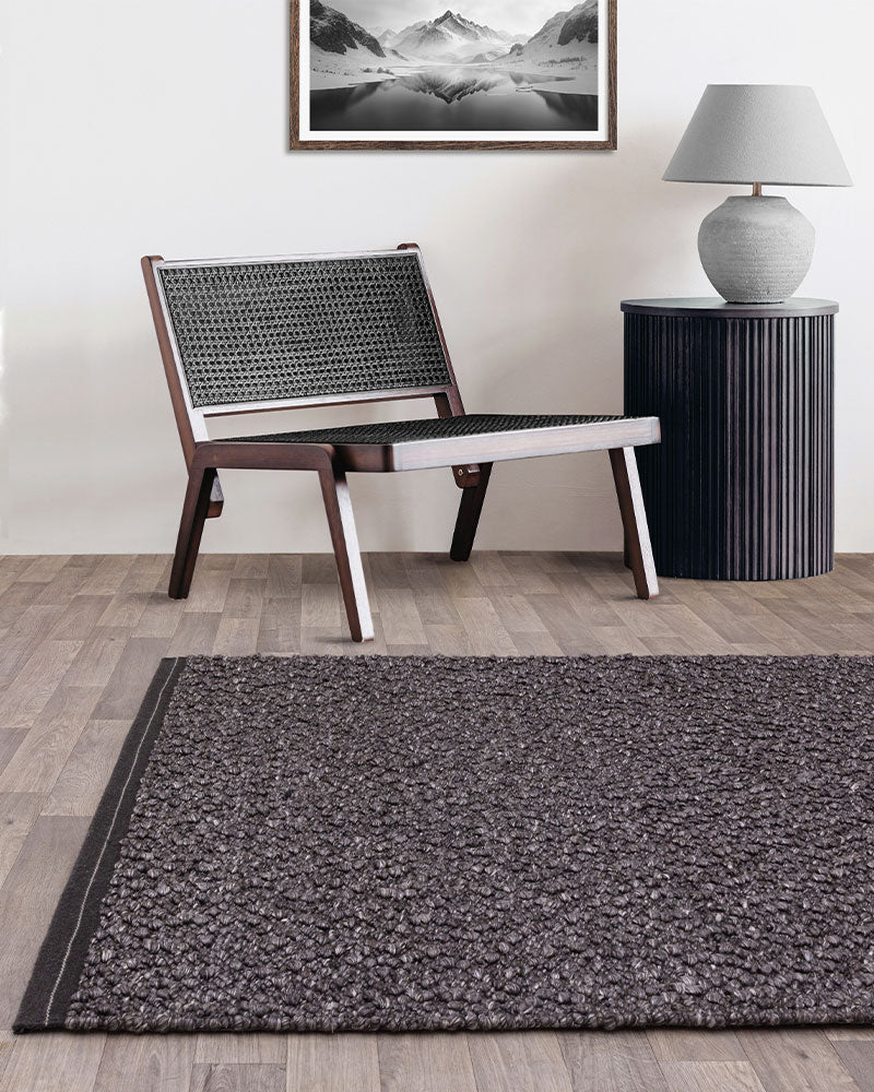 ELM CHARCOAL GREY CHUNKY BOUCLE TEXTURED WOOL MIX RUG