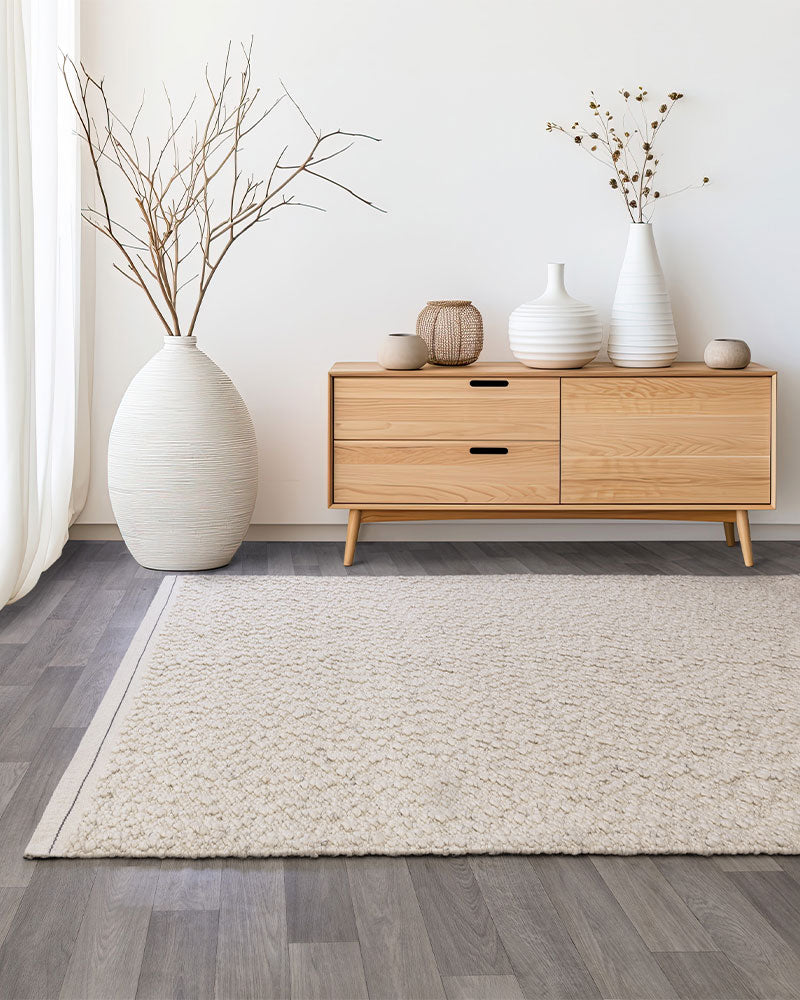 ELM IVORY CHUNKY BOUCLE TEXTURED WOOL MIX RUG