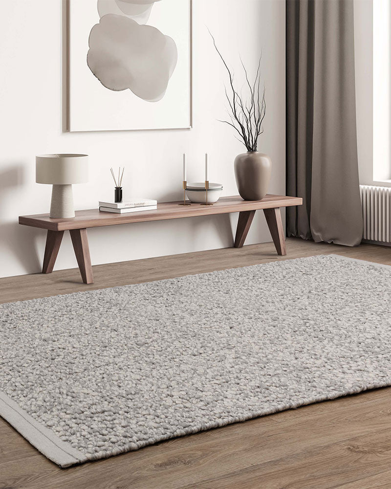 ELM SILVER GREY CHUNKY BOUCLE TEXTURED WOOL MIX RUG