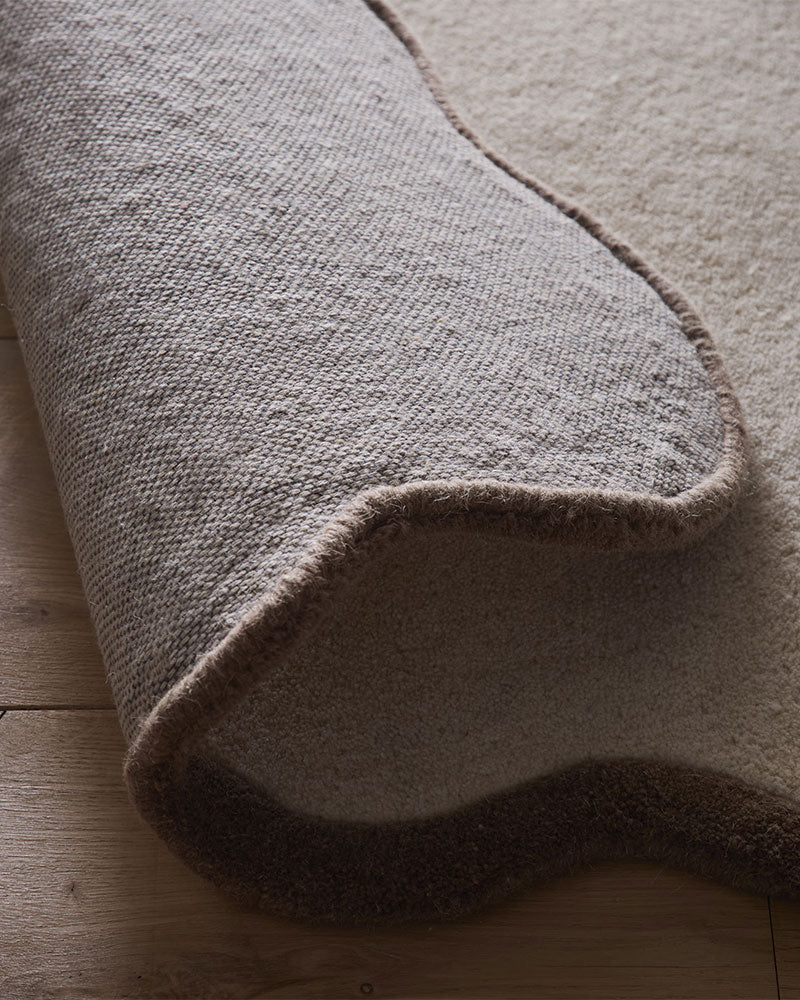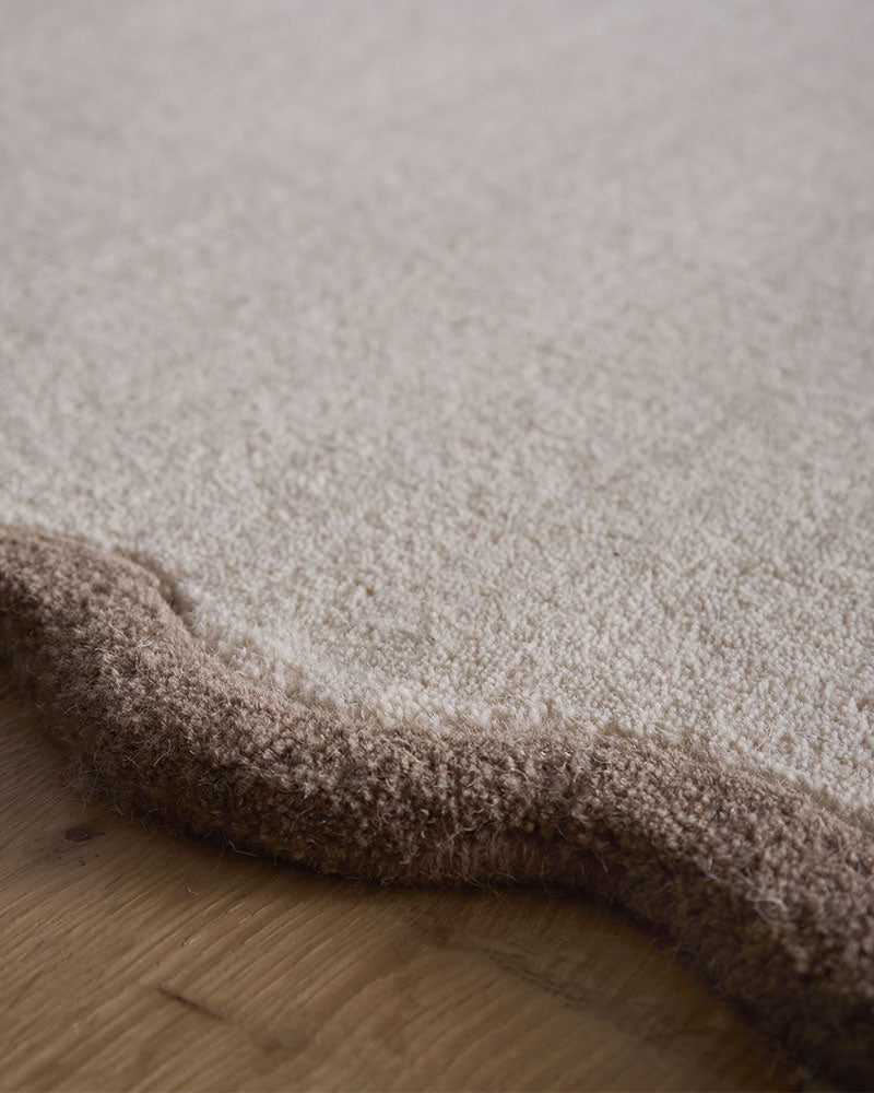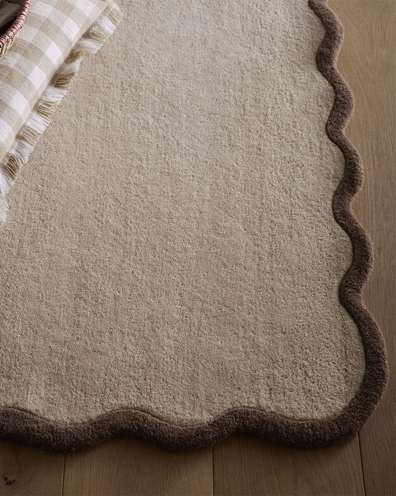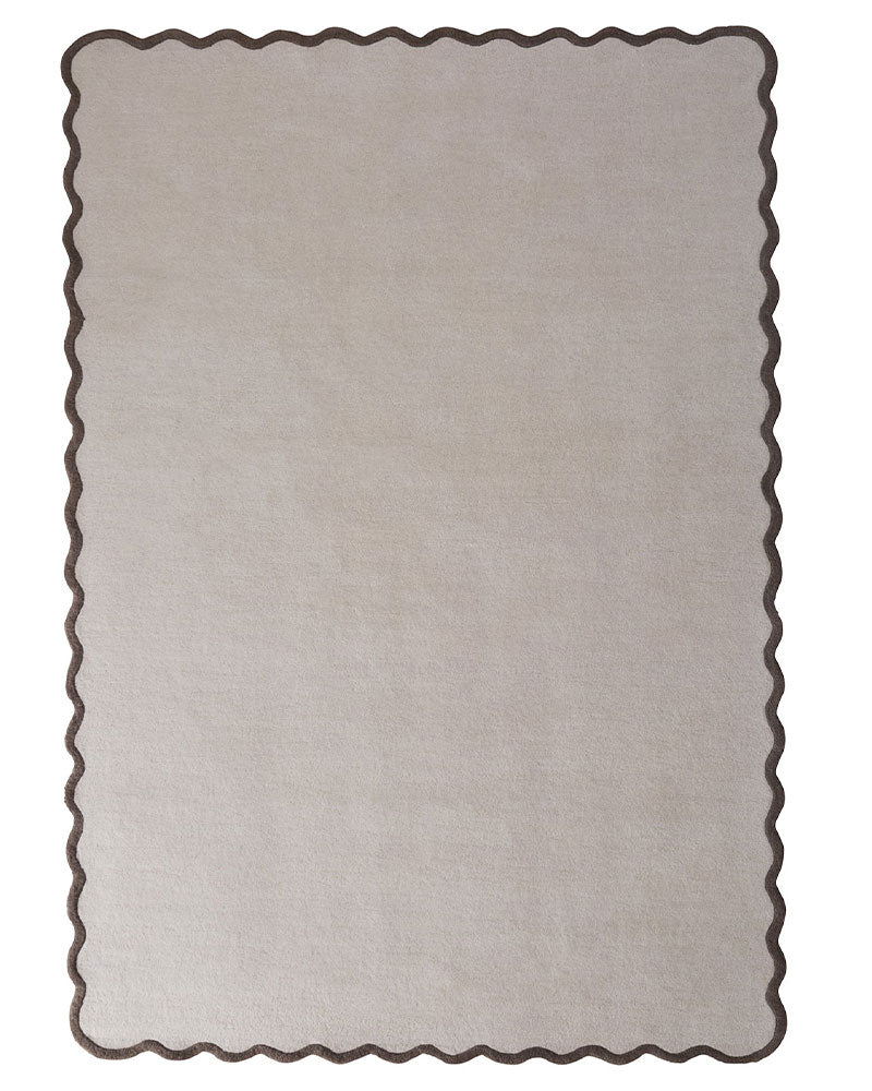 ELSIE SCALLOPED CONTRASTING EDGE NATURAL / BROWN WOOL RUG