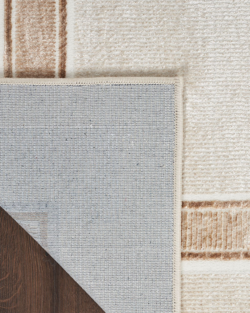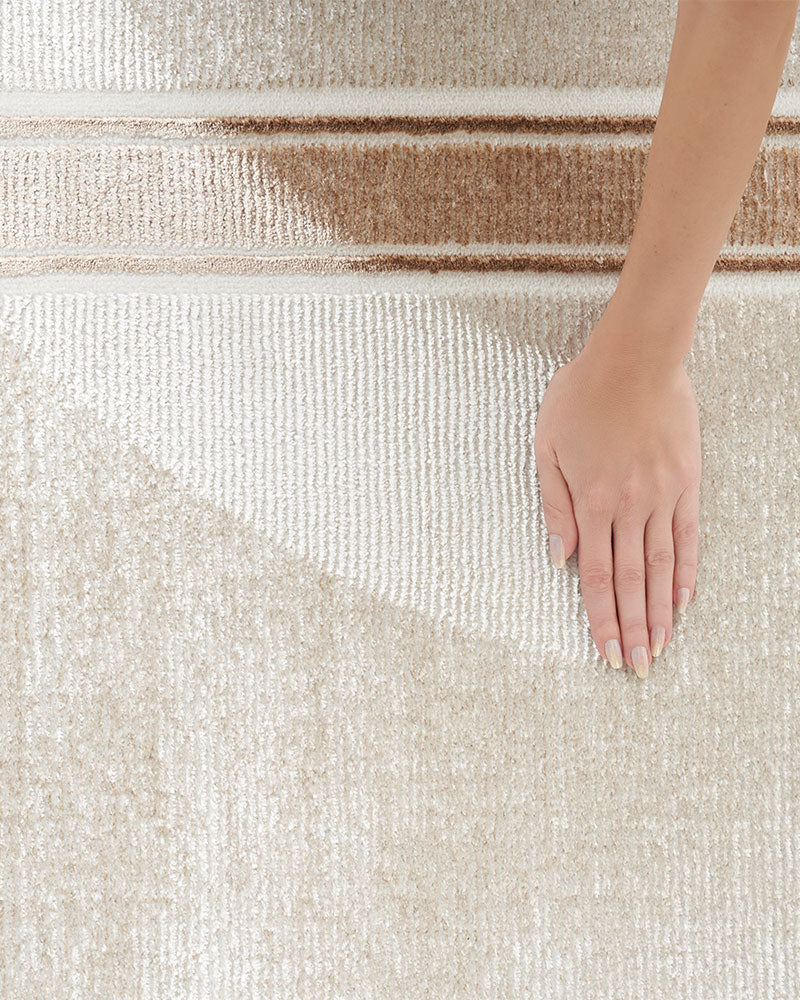 Create an ultra-glam focal point with this bordered rug from the Glitz Collection. It features an abstract center design surrounded by a series of wide and narrow borders in silver, ivory, and gold tones that are enhanced with subtly textured accents. Finished with a brilliant shimmer that adds a luxury feel, this contemporary rug is made from softly textured polyester.
