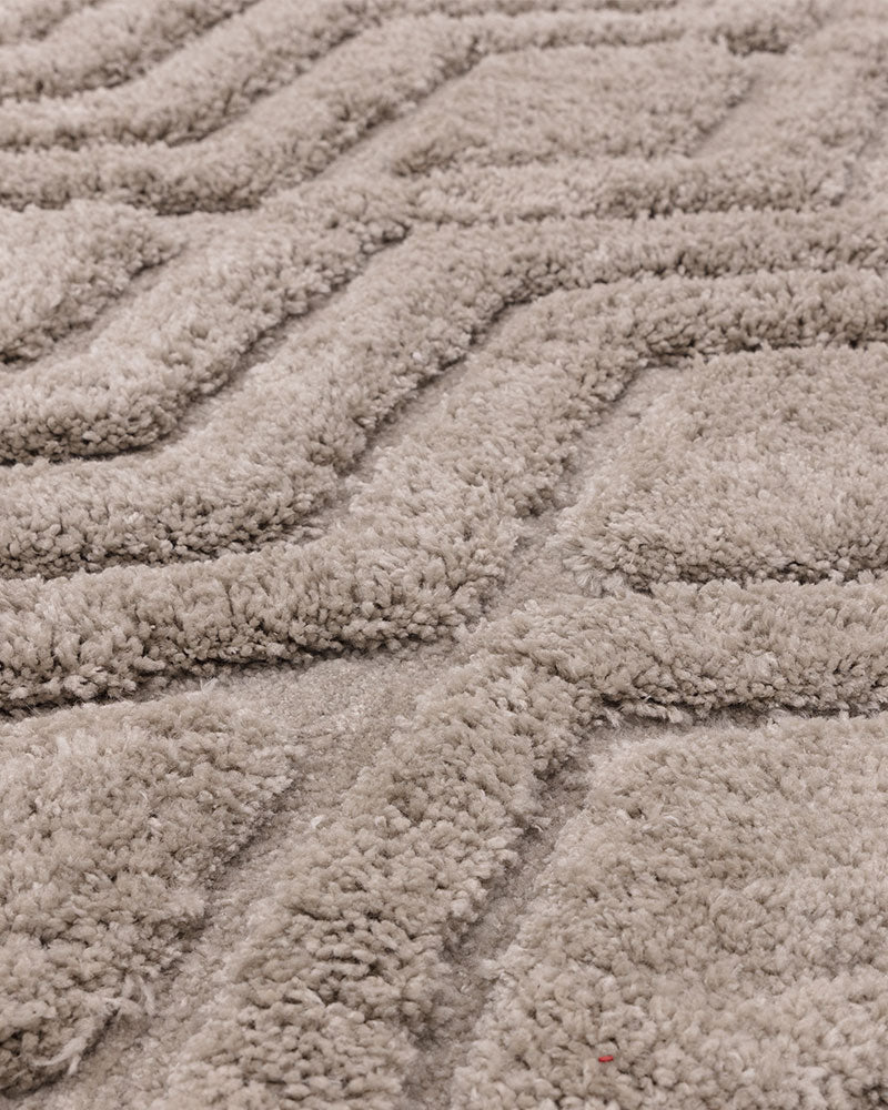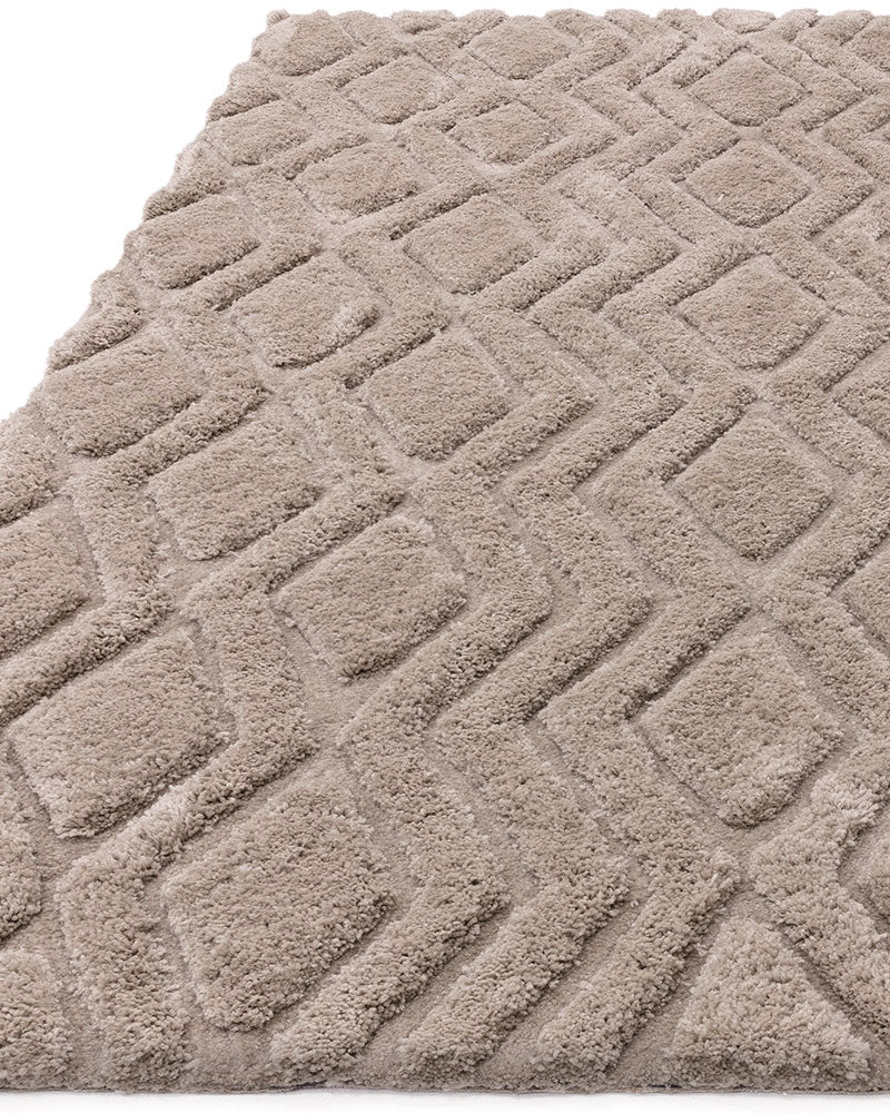 Defined high low shaggy collection tufted from soft touch polyester yarns, Harrison boasts a sumptuous underfoot experience. Finished with a contemporary geometric design across a selection of smart shades.