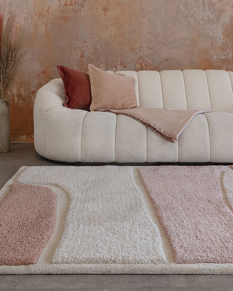 A college of soft abstract shapes formed from a high low pile in a soft and cosy texture.