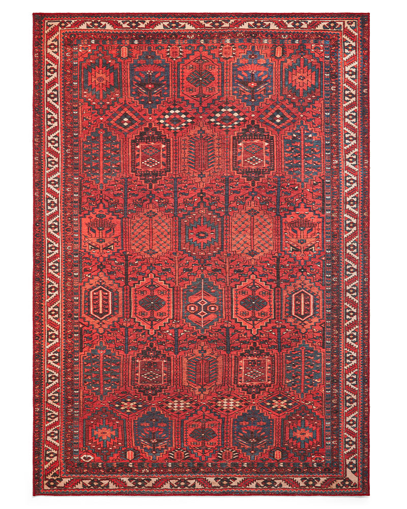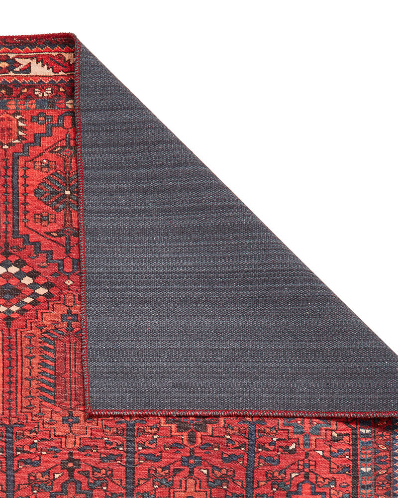 The Kashmar Machine Washable Rug features traditional design in red, navy and blue tones on machine-washable polyester. Digitally printed for intricate detail, it's lightweight, foldable and easy to maintain. Perfect for living rooms, bedrooms and high-traffic areas where style meets practicality.