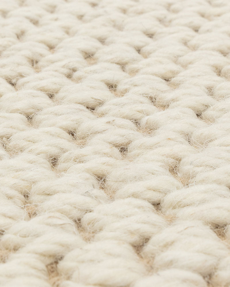 Korra is made on a traditional loom from jute and twisted woollen loops, framed with a cotton border. Available in five colourways with options for single or double loops. Due to the latex backing, these rugs don’t need any underlay adding.