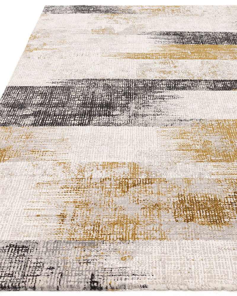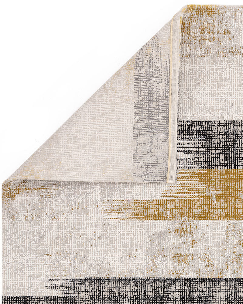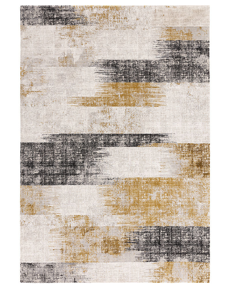 KUZA LINES GOLD BEIGE BLACK ABSTRACT RUG