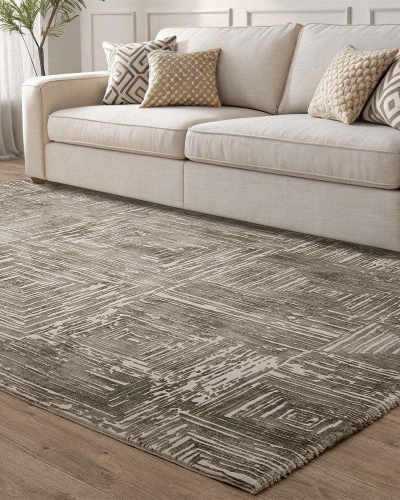 KUZA PORTRAIT KHAKI GREEN GEOMETRIC RUG