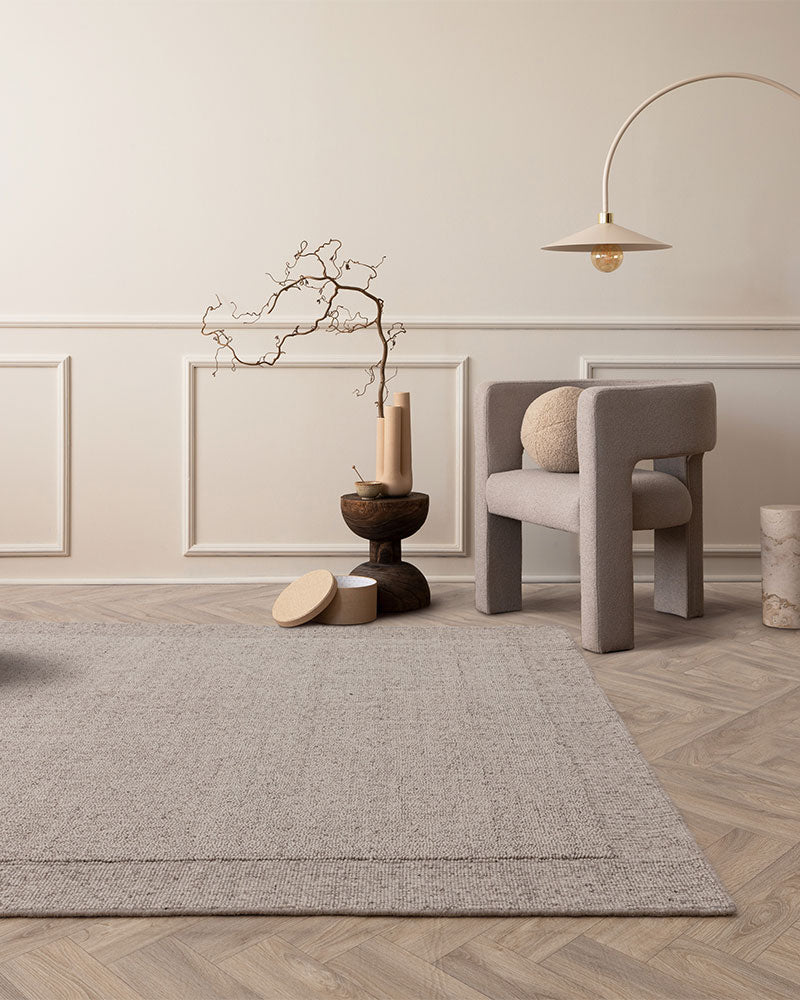 Using natural undyed wool, the Larson rug creates a relaxed distressed aesthetic that effortlessly works is any space. Dyed in warm natural tones with a soft wide edged border for a classic style.