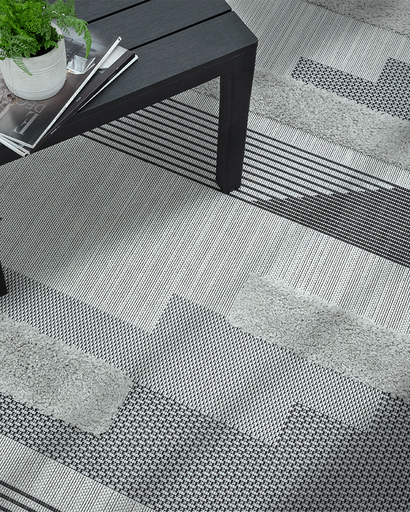 MONTY OUTDOOR RUG MN05 BLACK / GREY GEOMETRIC