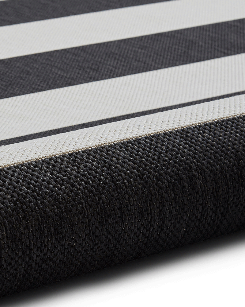 SANTA MONICA BLACK WHITE STRIPE 48644 INDOOR / OUTDOOR FLAT WEAVE RUG