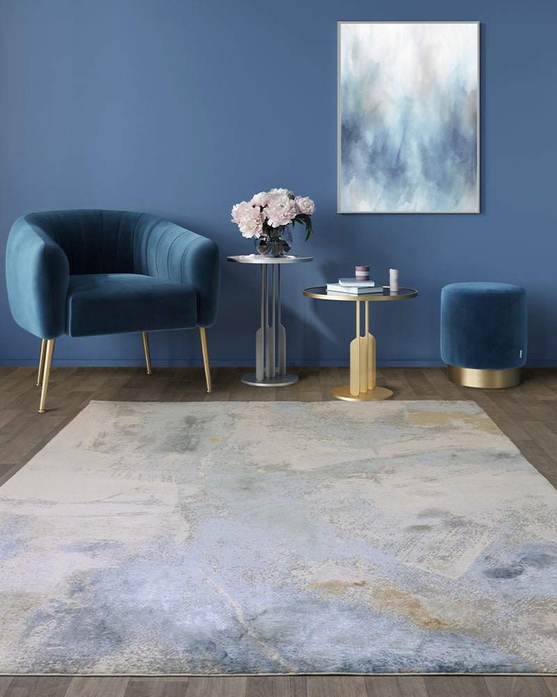 STELLAR ST06 BLUE MODERN ABSTRACT HIGH SHINE RUG