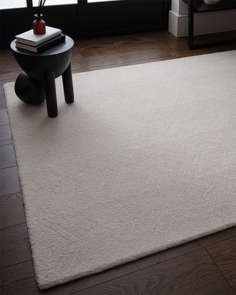 Theodore features a distinctive combination of loops and tonal woollen yarns, expertly hand tufted in chevron and cross hatch patterns.