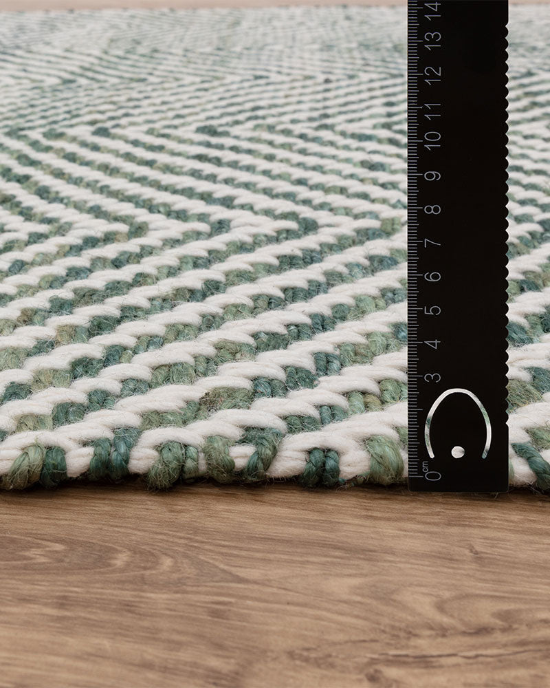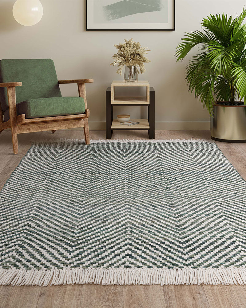 VIGO GREEN REVERSABLE JUTE WOOL ZIG ZAG CHEVRON RUG