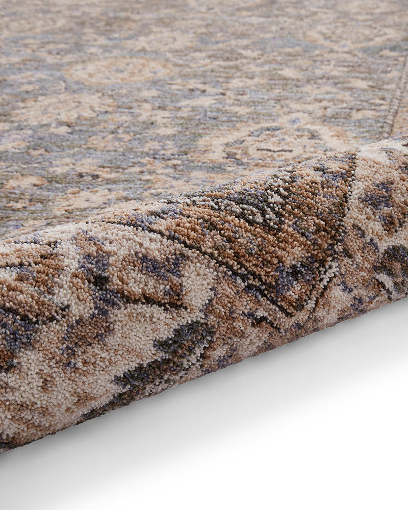 Vintage by Think Rugs is a collection of traditional designs in a contemporary muted palette. A classic central Kashan medallion is bordered with intricate floral patterns. Made from soft touch polypropylene and finished off with a short fringe.